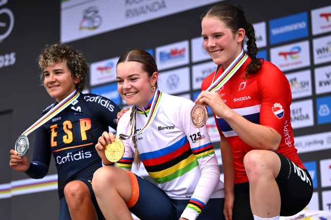 Championnats du Monde. La Néerlandaise Megan Arens titrée sur le contre-la-montre Juniors devant Paula Ostiz et Gissinger. ![]() Ce podium U19 | © UCI