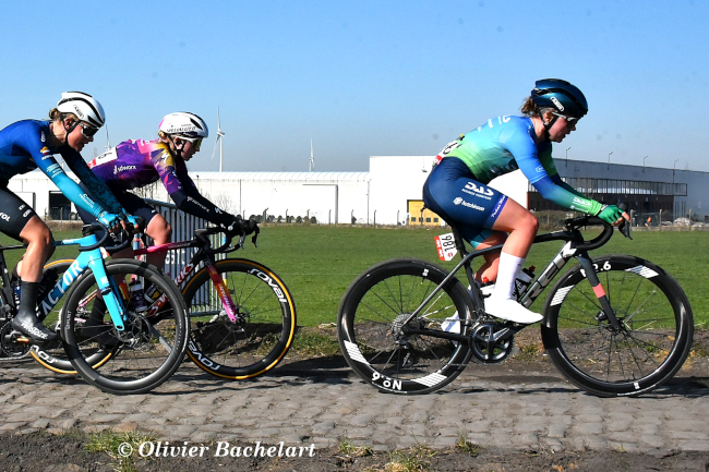 La DAS-Hutchinson de Simon Howes enregistre ainsi les arrivées de la Belge Mieke Docx (Lotto Ladies),