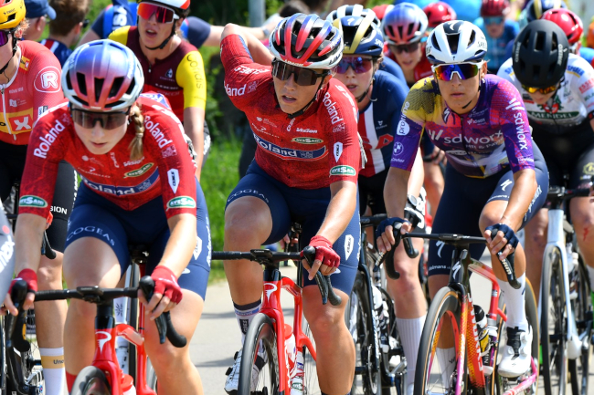 ainsi Ainara Albert (Massi-Baix Ter), Francesca Hall (Praties Cycling Team), Kaia Schmid (Liv AlUla Jayco Conti),