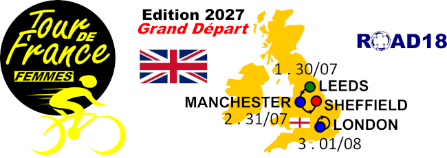 2022 Paris Champs-Élysées 2023 Clermont-Ferrand 2024 Rotterdam (NED) 2025 Vannes 2026 Lausanne (SUI) 2027 Leeds (GBR) ![]() TDFF 2027 - Grand Départ | © Franck Sylvain FRUCH / ROAD18 A lire aussi : L'arc-en-ciel prend le soleil Le Tour 2027 d'Angleterre Go AG Insurance-Soudal ! Le Mallorca se pointe Marie Le Net en tournéeDossiers : GIRO D'ITALIA TOUR DE FRANCE CHAMPIONNATS DU MONDE![]() |