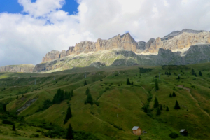 coincé entre les "gruppi" (bloc montagneux) Sella et Marmolada, le Pordoi permet de passer du Trentin (versant Ouest par