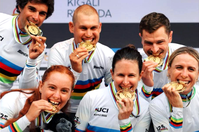 à Michael Matthews, Luke Plapp et Jay Vine) ont devancé de 5" la France (Cédrine Kerbaol, Juliette Labous, Maeva Squiban