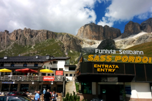 (surtout étrangers), les motards et les cyclistes, le lieu demeure une étape obligée des Dolomites. Au Nord, le téléphérique