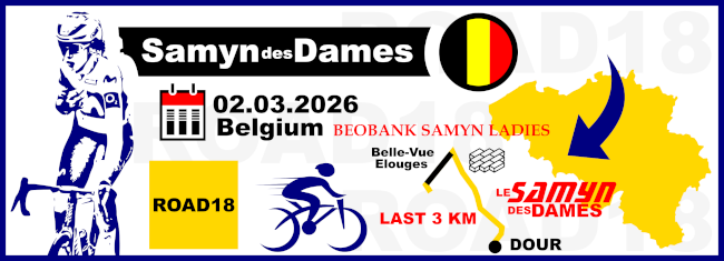![]() Samyn des Dames 2026 | © Franck Sylvain FRUCH / ROAD18 Palmarès du Samyn des Dames : 2025 Lorena Wiebes (NED, Team SD Worx-Protime) 2024 Vittoria Guazzini (ITA, FDJ-SUEZ) 2023 Marta Bastianelli (ITA, UAE Team ADQ) 2022 Emma Norsgaard (DEN, Movistar) 2021 Lotte Kopecky (BEL, LIV Racing) 2020 Chantal Blaak (NED, Boels-Dolmans) 2019 Jip Van Den Bos (NED, Boels-Dolmans) 2018 Janneke Ensing (NED Alé Cipollini) 2017 Sheyla Gutierrez (ESP, Cylance Pro Cycling) 2016 Chantal Blaak (NED, Boels-Dolmans) 2015 Chantal Blaak (NED, Boels-Dolmans) 2014 Emma Johansson (SWE, Orica-AIS) 2013 Ellen Van Dijk (NED, Team Specialized-Lululemon) 2012 Adrie Visser (NED, Skil-Argos) A lire aussi : Valley of the Sun #1 : Rinaldo facile Setmana : la 3ème étape annulée Setmana Val. #2 : Ferguson renouvelle Le Hageland le 1er mars Almeria recevra dans 9 joursDossiers : GIRO D'ITALIA TOUR DE FRANCE CHAMPIONNATS DU MONDE![]()