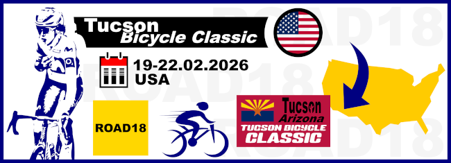Les étapes : 19/02 Marana (ITT 7.8 km) 20/02 Sahuarita Road Race à Green Valley (98 km) 21/02 Rio Nuevo Tucson Criterium (70') 22/02 Oro Valley Circuit Race (75') ![]() Tucson Bicycle Classic 2026 | © Franck Sylvain FRUCH / ROAD18 A lire aussi : Cinq pour les N1 Plages Vendéennes : les équipes UCI Ranks Ind. 17/02 UCI Ranks Teams 17/02 Les N2 dans le TarnDossiers : GIRO D'ITALIA TOUR DE FRANCE CHAMPIONNATS DU MONDE![]()