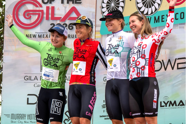 Tour of the Gila #1. Le CLM pour Lauren Stephens (Aegis x Leaders of Enchantment) devant Emily Ehrlich. ![]() Le premier podium : Ehrlich-Stephens-Hanel-Frye | © Tour of the Gila